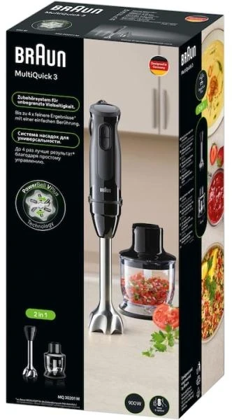 Az új MultiQuick 3 bormixer PowerBell VPlus technológiával rendelkezik, így akár négyszer finomabbra vágja az ételeket*. Az extra őrlőpenge és a 6 belső borda révén az étel többször érintkezik a pengékkel, ami fordulatonként több vágást végez, és ezzel gyorsabb és hatékonyabb aprítást biztosít. A Dual Speed vezérlés logikus és könnyen használható. 900 wattos teljesítményével bármit egyszerűen turmixolhatsz és apríthatsz. Finomra aprított eredményekre van szükséged? Csak nyomd meg a két sebesség egyikét – ilyen egyszerű.