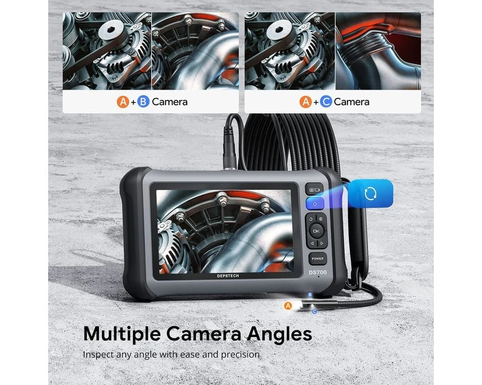 Ez különösen akkor hasznos, ha a terület összetett vagy több szögből történő vizsgálatot igényel. A legkorszerűbb 2,0 megapixeles CMOS képérzékelő a Bluart 3.0 képfeldolgozó processzorral elképesztően részletes képeket biztosít. A fő- és oldalkamerák egymástól függetlenül vagy egyszerre is használhatók, mindegyik saját megvilágítással, hogy még a legsötétebb területeket is megvilágítsa. Az osztott képernyős módban a különböző nézeteket egymás mellett összehasonlíthatja, így könnyen azonosíthatja az esetleges ellentmondásokat vagy problémákat. A hangtisztaság és a rögzítési funkciók is kiválóak. A beépített mikrofon és hangszóró zökkenőmentes hangfelvételt és -lejátszást tesz lehetővé.