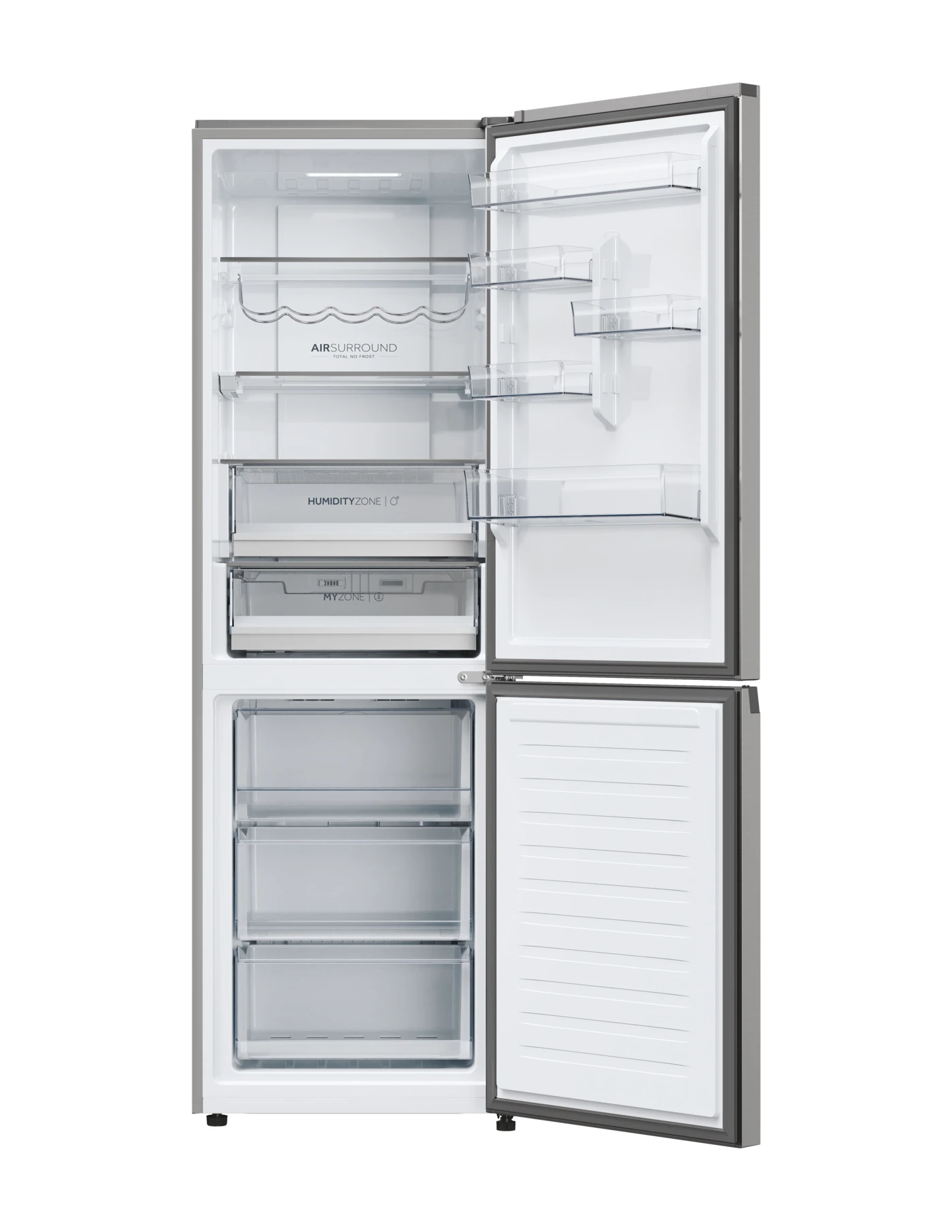 A 60 cm széles, felül hűtőszekrénnyel, alul pedig fagyasztóval rendelkező Haier Two Doors 60 termékcsalád az előkelő dizájn és az élvonalbeli funkciók révén a hibátlan teljesítmény tökéletes kombinációja. A Haier 2D Series 5 PRO hűtőszekrényei garantálják az élelmiszerek frissességének megőrzését a speciális zónáknak, a fejlett technológiának és egyéb megoldásoknak köszönhetően mind a hűtő-, mind a fagyasztórekeszben. Ezenkívül nagy kapacitást és csökkentett, akár az A energiaosztályba tartozó energiafogyasztást kínálnak, így kímélik a környezetet és pénzt takarítanak meg. A hOn alkalmazásnak, a mesterséges intelligenciának és a wifi csatlakoztathatóságnak köszönhetően innovatív funkciókat kínálnak, amelyek előre jelzik frissesség iránti igényt.