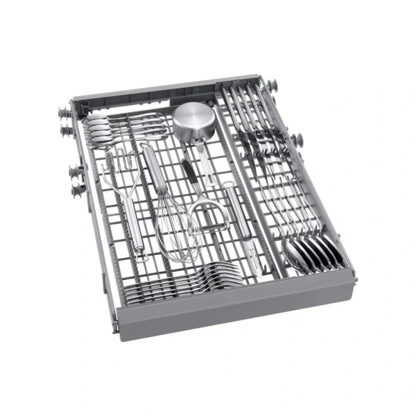 Használd ki jobban a mosogatógéped! Az átalakítható evőezköz tálca külön területet biztosít az evőeszközöknek és konyhai eszközöknek, így több helyet szabadít fel az alsó állványokon. Ez azt is jelenti, hogy a tárgyak könnyedén be- és kirakodhatók, különösen mivel levehető és bárhová áthelyezhető.
