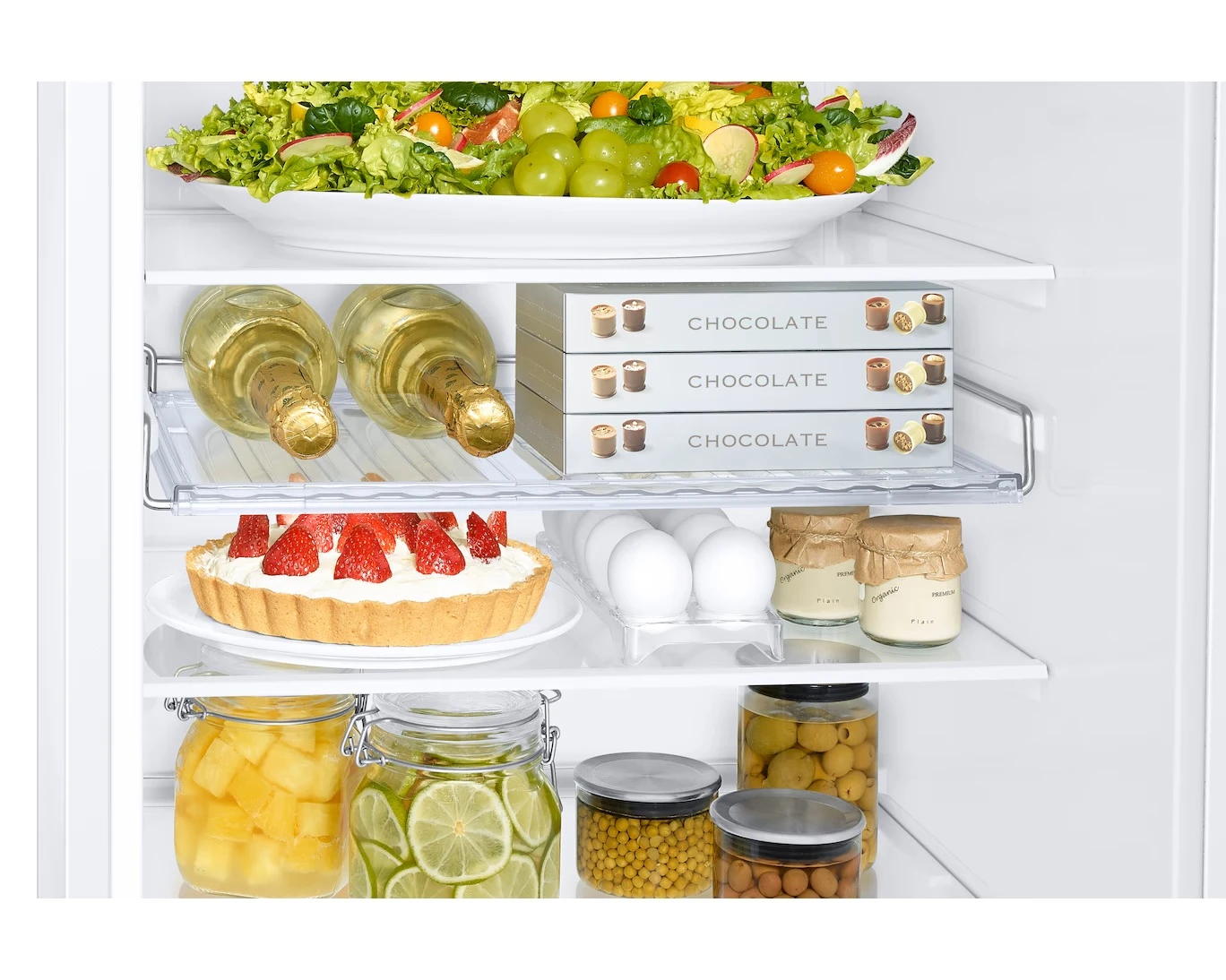 Tárolj nagyobb, akár 2,5 liter méretű üvegeket az ajtóban, hogy a polcokon több hely maradjon másnak! Az ajtóban lévő szélesebb és mélyebb tárolórekesz segítségével biztonságosan tárolhatsz széles kartonokat vagy nagy üvegeket. Tökéletes ahhoz, ha könnyen el szeretnéd érni a kedvenc, hűtött italaidat.