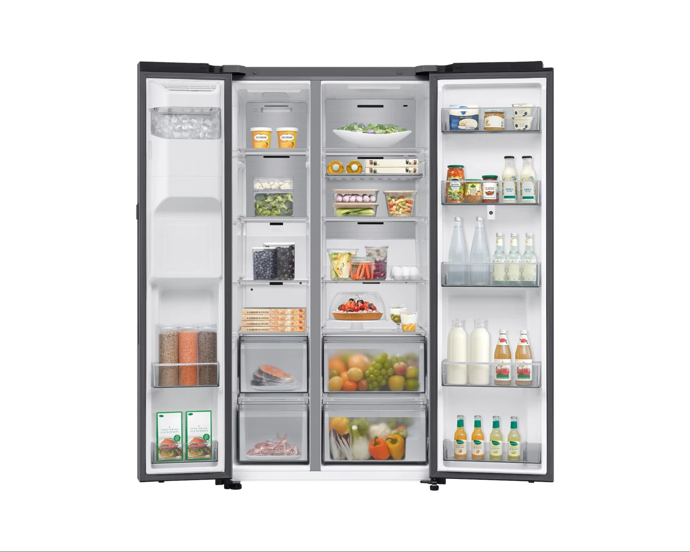 Élvezd a hűsítő italokat vagy jeget a víztartály újratöltésével járó gondok nélkül! Az elülső részbe beépített víz- és jégadagoló könnyen csatlakoztatható a vízellátáshoz, így egyetlen egyszerű érintéssel szerezhetsz egy pohár hideg vizet, vagy rengeteg jeget.
