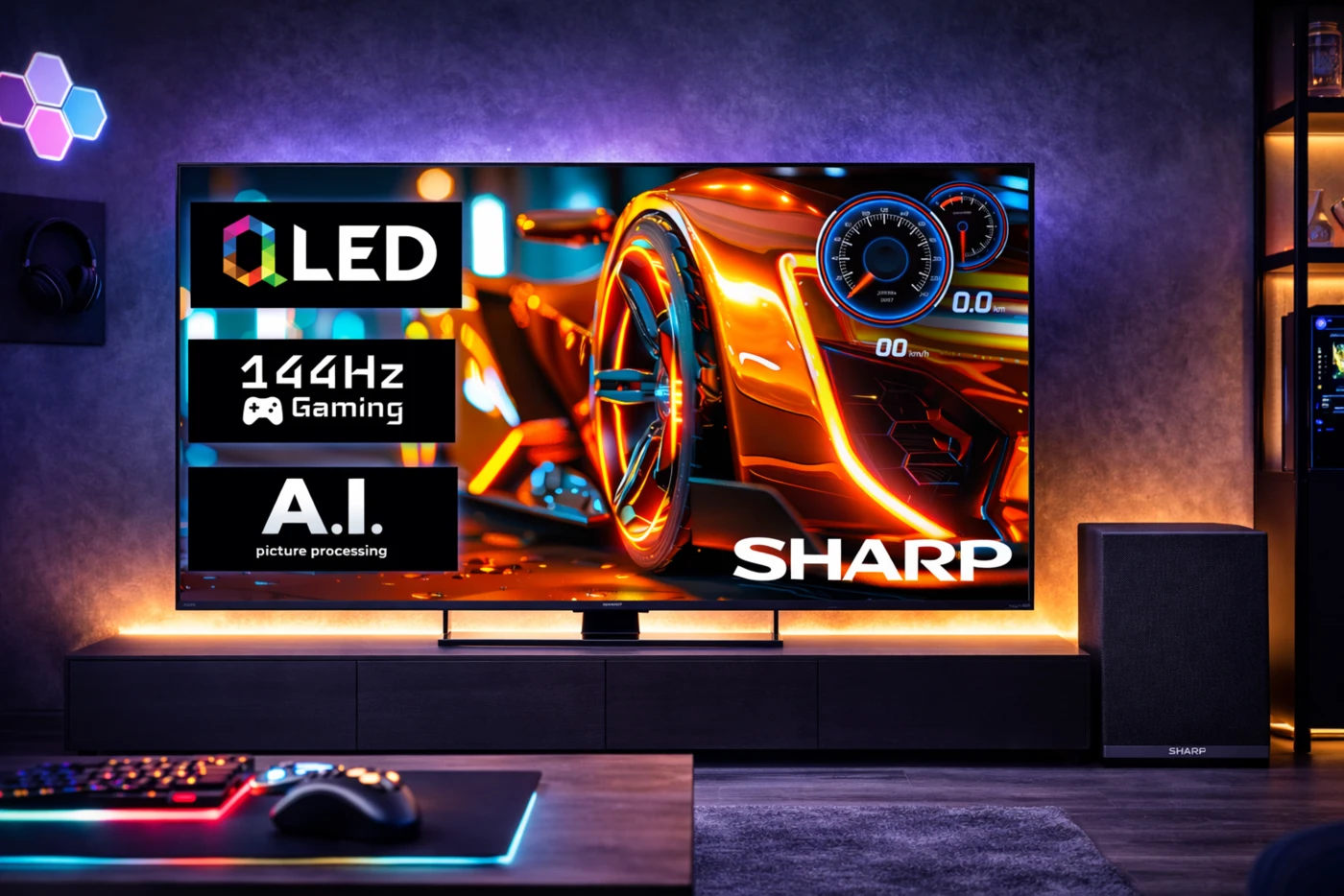 SHARP 55HR7265E 139cm-es 4K UHD 144Hz QLED Google TV + CP-AWS0101 AQUOS mélynyomó