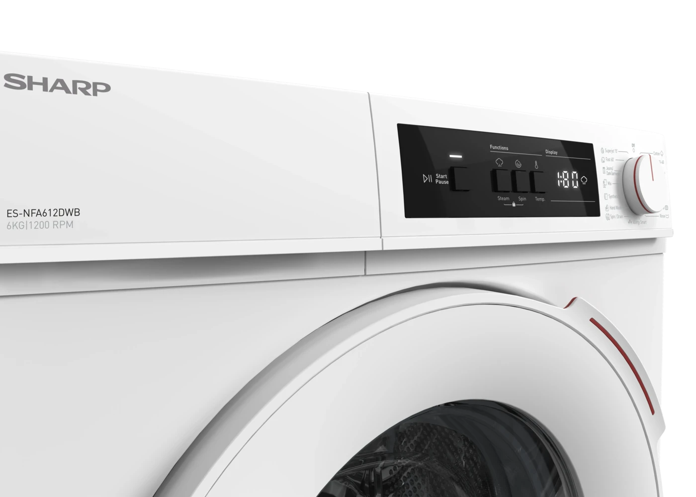 SHARP ES-NFA612DWB-EE elöltöltős mosógép, inverter motorral 6 kg, 1200 ford.
