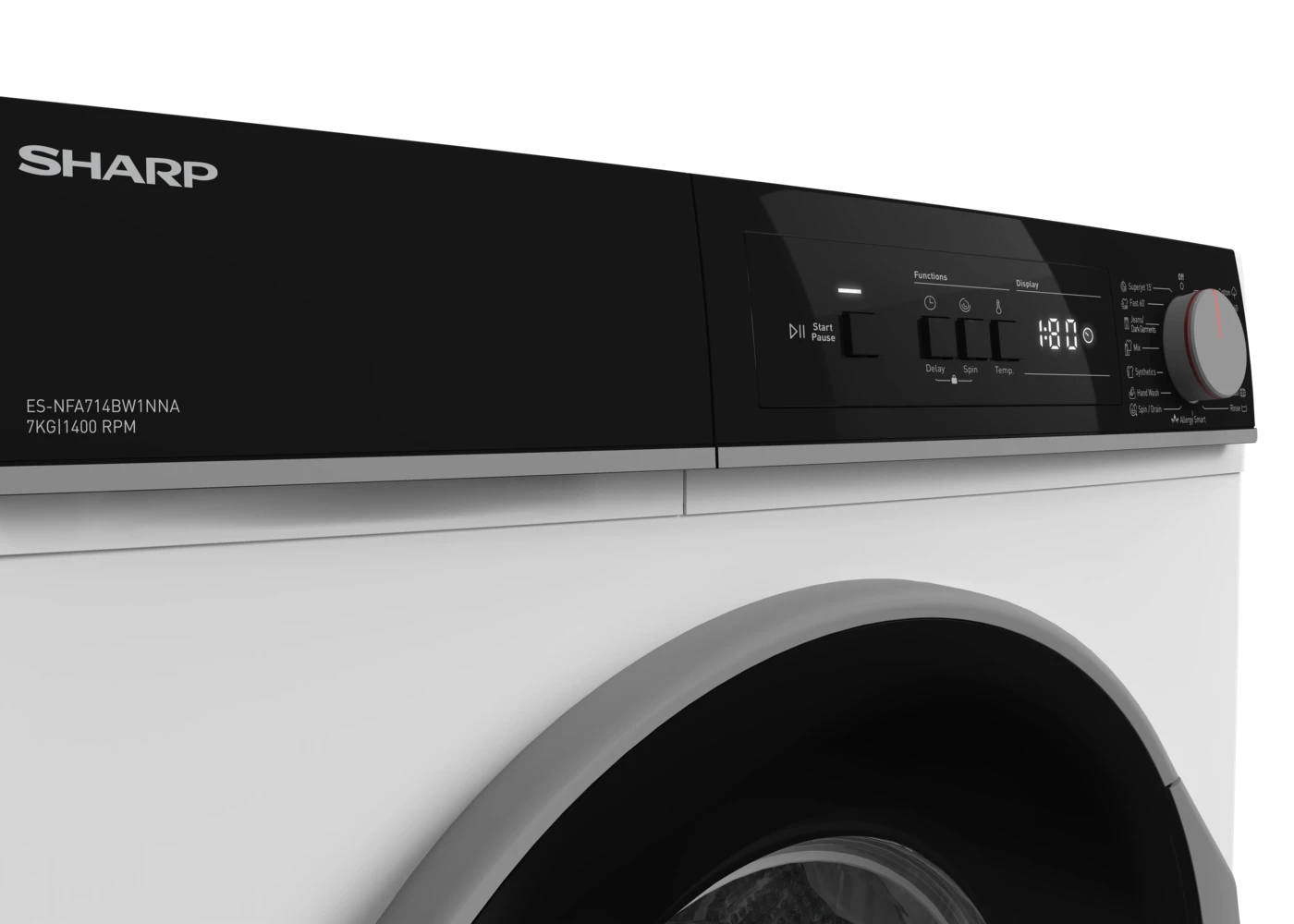 SHARP ES-NFA714BW1NNA-EE Elöltöltős mosógép inverter motorral (7 kg, 1400 ford.), Fehér
