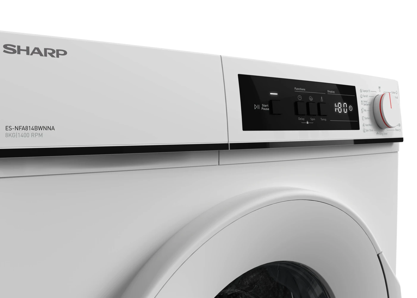 Termékleírás – SHARP ES-NFA814BWNNA-EE Mosógép (8 kg, 1400 RPM, A energiaosztály)