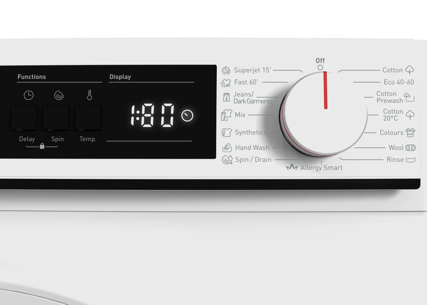 Széles programválaszték (15 program) – Minden típusú anyaghoz és szennyezettséghez megfelelő program: Cotton, Cotton Prewash, Cotton 20°C, Eco 40–60, Colours, Wool, Rinse, Allergy Smart, Spin/Drain, Hand Wash, Synthetics, Mix, Jeans, Fast 60’, SuperJet 15’. Ez biztosítja, hogy mindig a legmegfelelőbb mosási ciklust választhasd.
