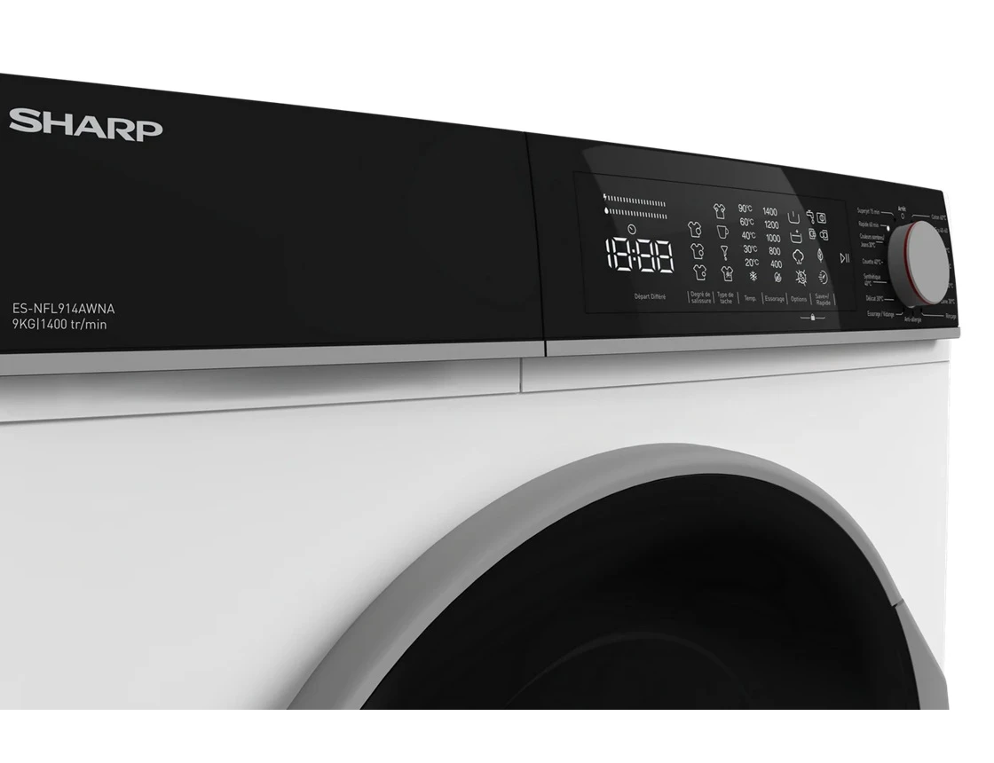 SHARP ES-NFL914AWNA-EE Elöltöltős mosógép (9 kg, 1400 ford.), Fehér