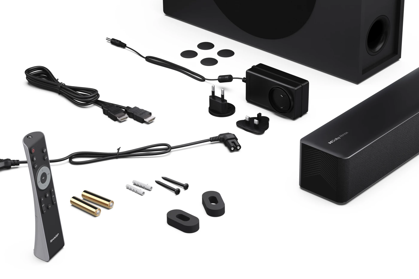 SHARP HT-SBW310 2.1 Dolby Atmos® / DTS Virtual:X® hangprojektor vékony vezeték nélküli mélynyomóval fekete