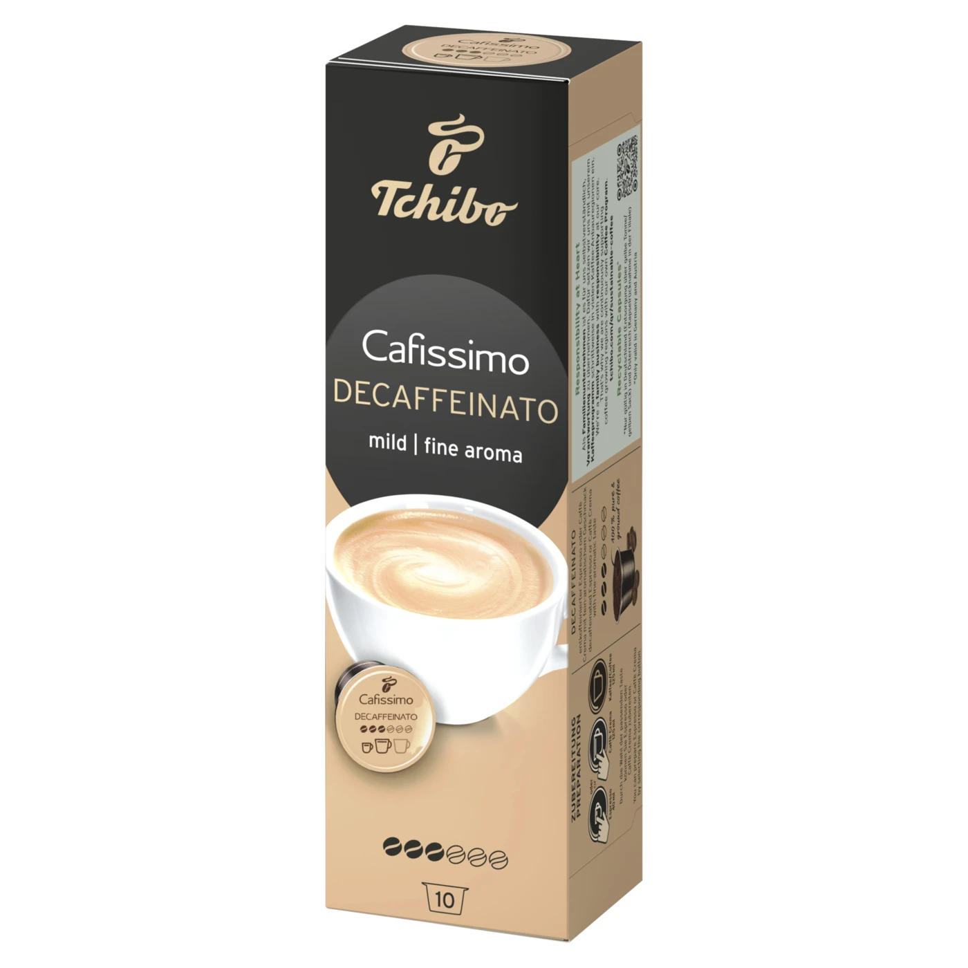 Fedezze fel ezt az olasz mintára, szenvedélyes kávéfogyasztóknak készült, egyedülálló caffè cremát! A Tchibo Cafissimo Espresso Decaffeinated intenzív és telt aromájú, amely Tchibo kávébabból, kíméletesen koffeinmentesített és egyedi pörköléssel készített kávéból készül.