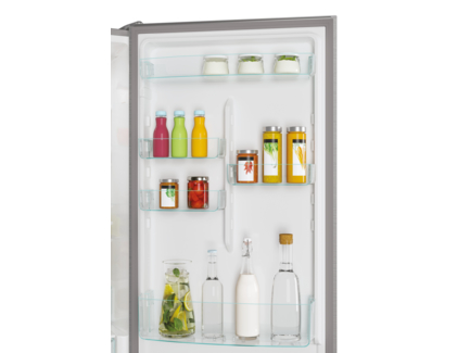 Mozgassa polcait és ajtópolcait tetszése szerint, és élvezze az akár 100 különböző belső elrendezési kombinációt a teljes tárolási rugalmassághoz. Sőt, a Total No Frost Circle+-nak köszönhetően, amely minden sarokban egyenletes hőmérsékletet és páratartalmat tart fenn, ételeit bárhol tárolhatja a hűtőn belül. A biztonsági üveg polcok a vastagságuknak köszönhetően rendkívül biztonságosak és ellenállóak. Lekerekített és elegáns kialakításuknak köszönhetően könnyen tisztíthatók is, elkerülvén a szennyeződések lerakódását a résekbe.
