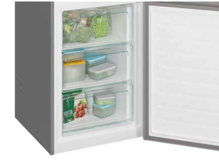 Az új energiacímke besorolás szerint ez a hűtőszekrény E energiaosztályú. A G-osztályú készülékekhez képest akár 36%-kal is csökkenti a fogyasztást, ezáltal pénzt takarít meg és kíméli a környezetet.