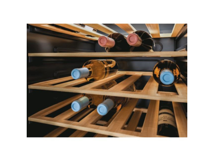 Az elektronikus kezelőpanel lehetővé teszi a DiVino borhűtő egyszerű és intuitív vezérlését. Kapcsolja be vagy ki a hűtőt egy egyszerű érintéssel, válassza ki a fehérborok, vörösborok és pezsgők számára megfelelő hőmérsékletet, vagy a hőmérsékletet a különféle bortípusok kombinációjának tárolásához. Ha szeretné, manuálisan is beállíthatja a hőmérsékletet, 7 és 18 fok között.