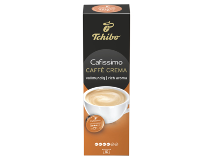 Caffè Crema Rich aroma a Cafissimo kapszulás kávéfőző rendszerhez. Minden egyes kapszula pontosan kiadagolt, finomra őrölt, egy csésze ízletes caffè crema vollmundig kávéhoz való mennyiséget tartalmaz. Egyszerűen csak a Tchibo Cafissimo készülékbe kell helyezni – egy gombnyomás és máris kész a kávé.