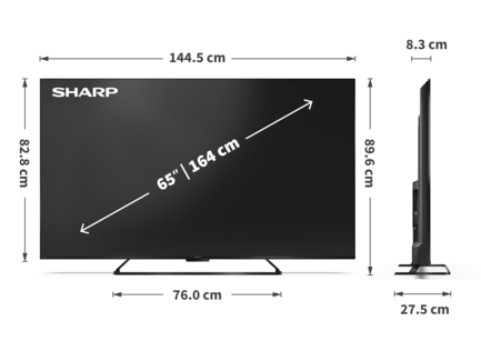 A 65HR7265E egy 4K Ultra HD keret nélküli QLED Sharp Google TV™ 144 Hz-es játékélménnyel.
